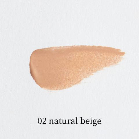 下地・日焼け止めなどのあとベースファンデーションとして02 ナチュラルベージュを全体に広げ、指のはらでポンポンと優しくなじませます。