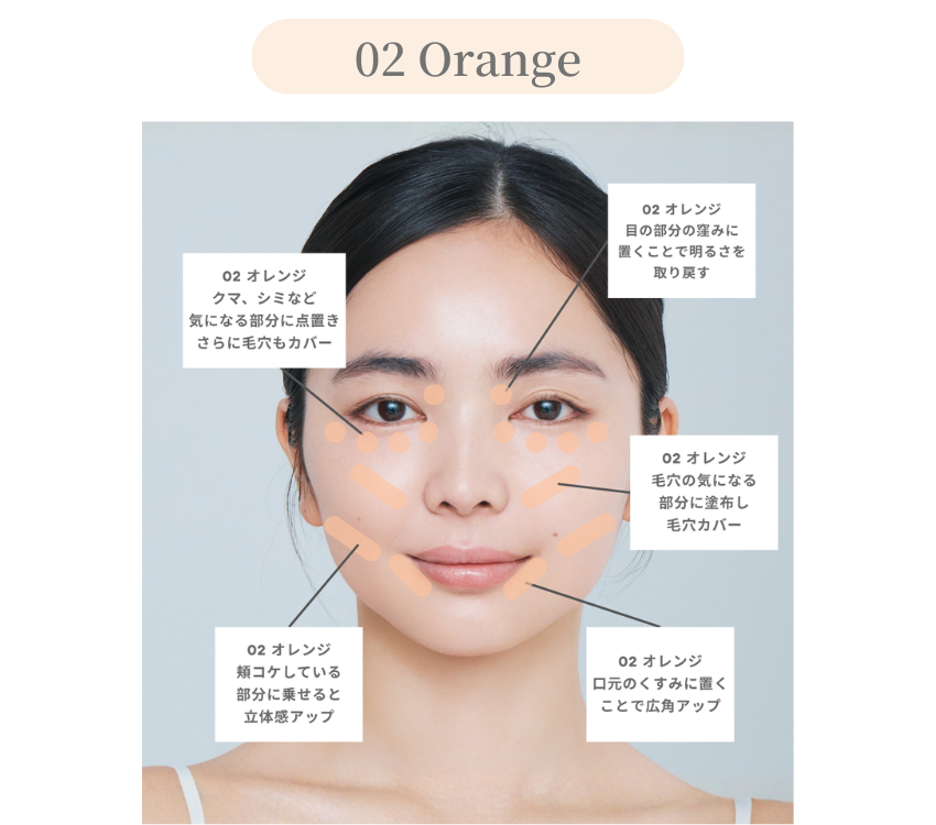 目周り、口元の影などに使うことによりマイナス面をしっかりカバー。
